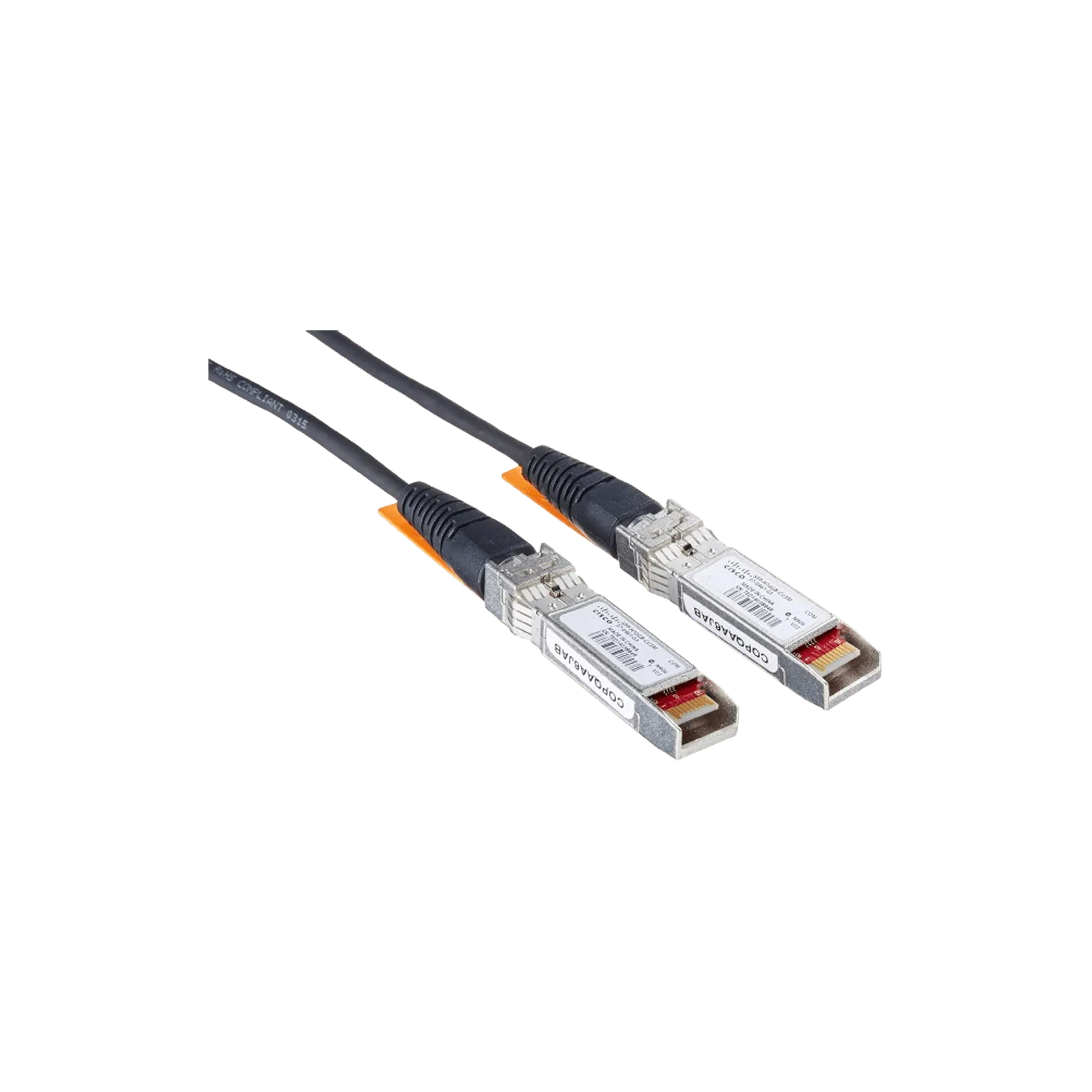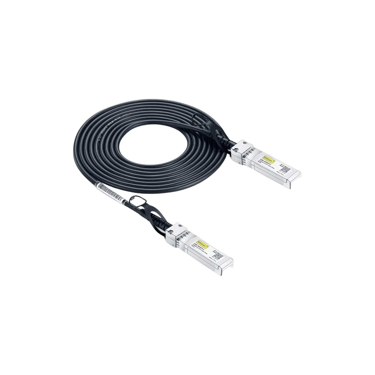 The SFP-H10GB-CU3M features SFP+ connections on each end, which are linked together via a 3 meter long 30 gauge (30AWG) copper cable. This configuration offers highly reliable performance and excellent EMI protection. This DAC cable is an affordable, energy efficient, and minimum latency connection option for 10-Gigabit Ethernet applications.